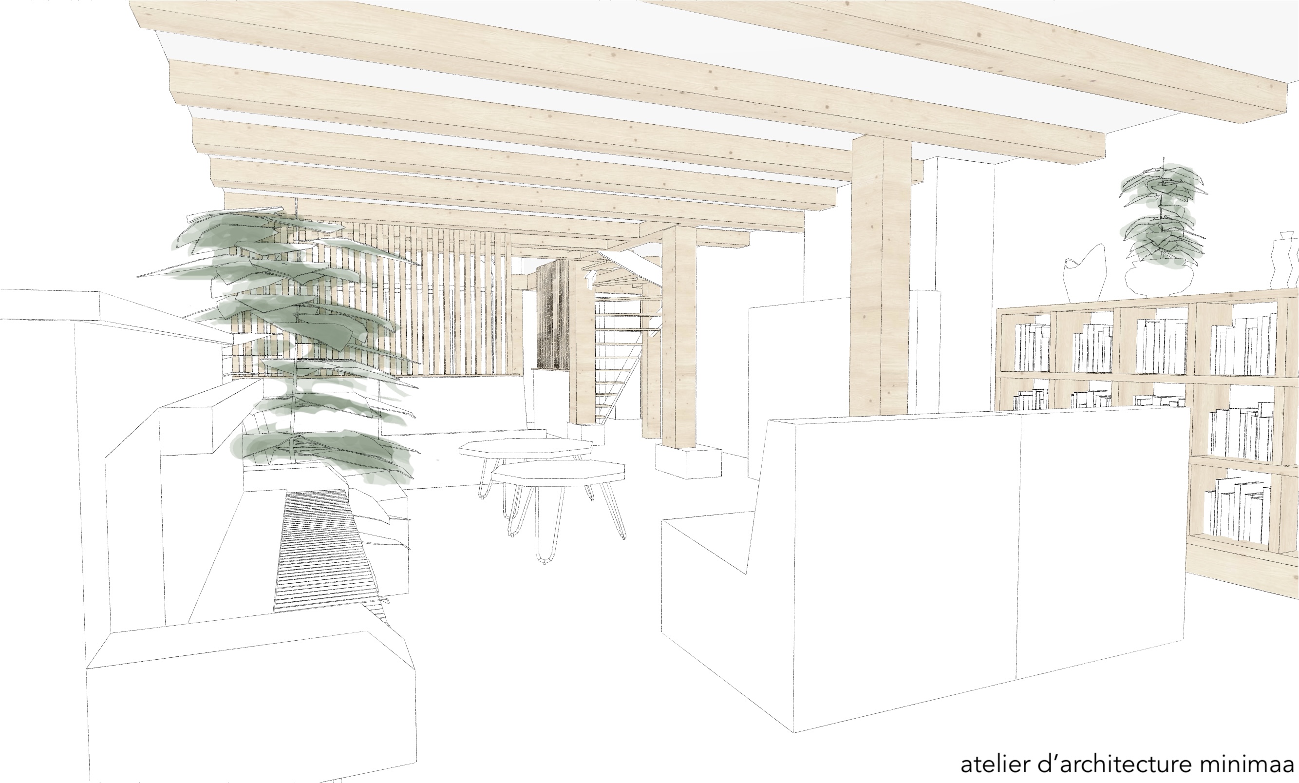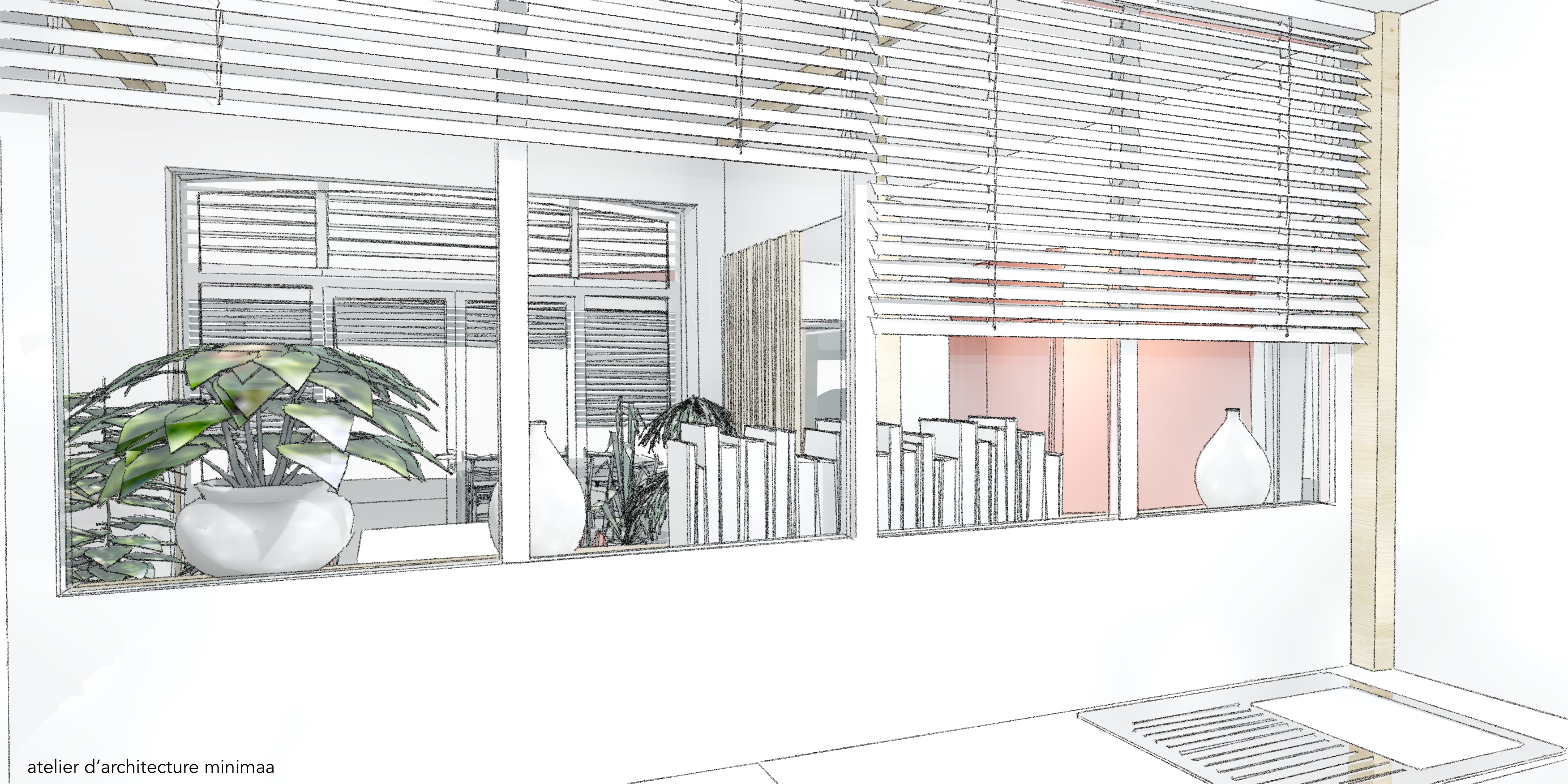 - création d'un escalier en lien avec le séjour existant, création de demi-niveaux