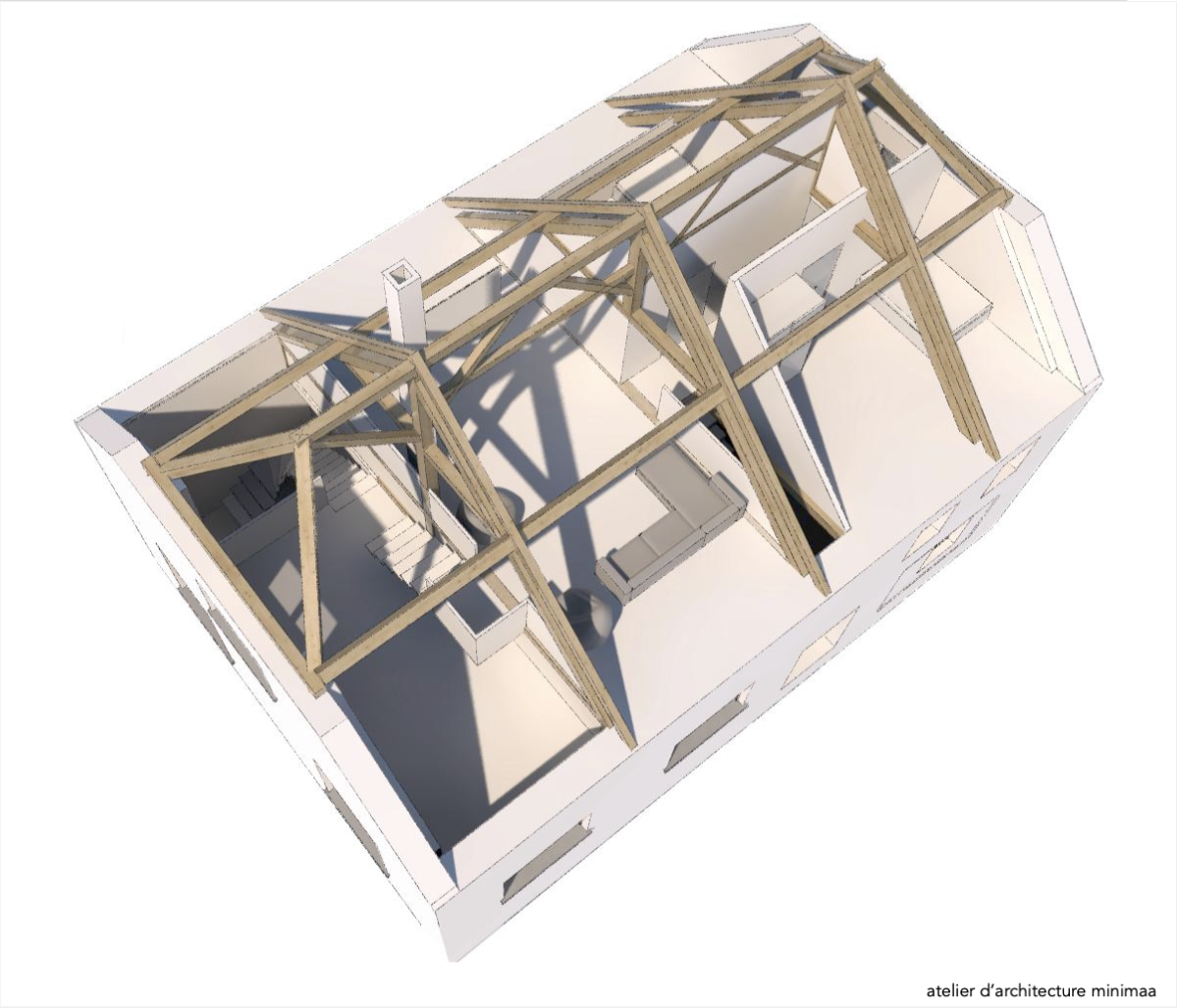 Adaptation aux éléments porteurs existants de la maison (murs en moellons pierre, poteaux/poutres bois) pour limiter les coûts de reprise structurelle.