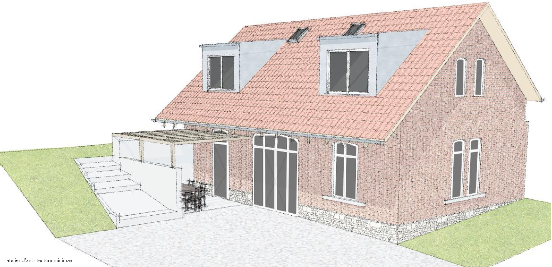 Rénovation d'une ancienne ferme composé d'un logement et une grange attenante :